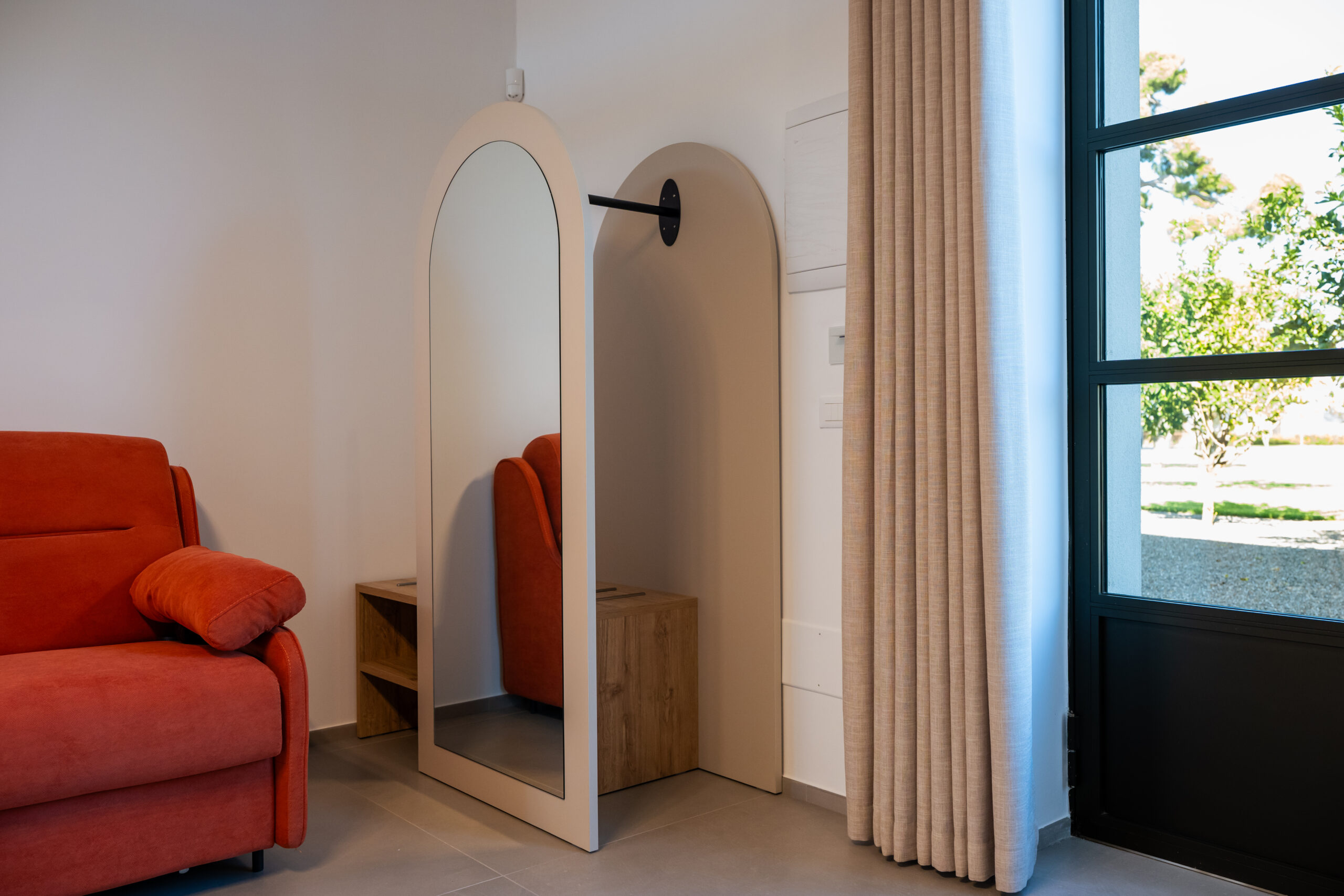 Il Loft è un ampio appartamento openspace di 50 mq, situato al piano terra della Tenuta con ingresso indipendente e giardino privato arredato con tavolo, sedie e ombrellone.